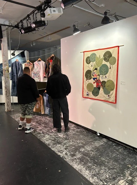 For the past three months, CAM’s artist in residence Vân Vũ has been working on a new series of mostly upcycled fabric “paintings” that explore themes of identity, anti-imperialism, and Vietnamese women, This new work marks an evolution in Vân’s practice as they move from a focus on aesthetics and wearable art to work that centers on a more direct message.